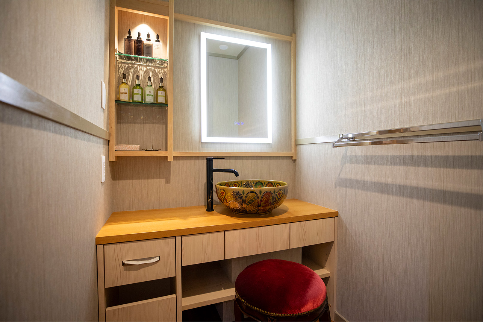 旅の疲れをしっかりと癒していただけますよう、メインベッドルームには神奈川県初となるシモンズ最高峰マットレス(リュクスシリーズ)を使用しております。